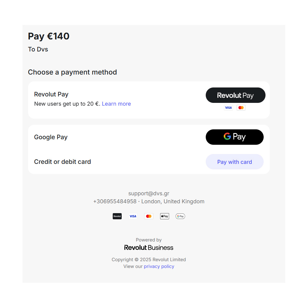 Λάβετε πληρωμές με Revolut Pay , checkout με 1 κλικ