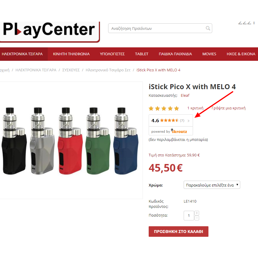 .Η υπηρεσία Αξιολογήσεις Προϊόντων Skroutz παρέχεται δωρεάν απο το Skroutz και μπορεί να ενεργοποιηθεί εφόσον το καταστημα :